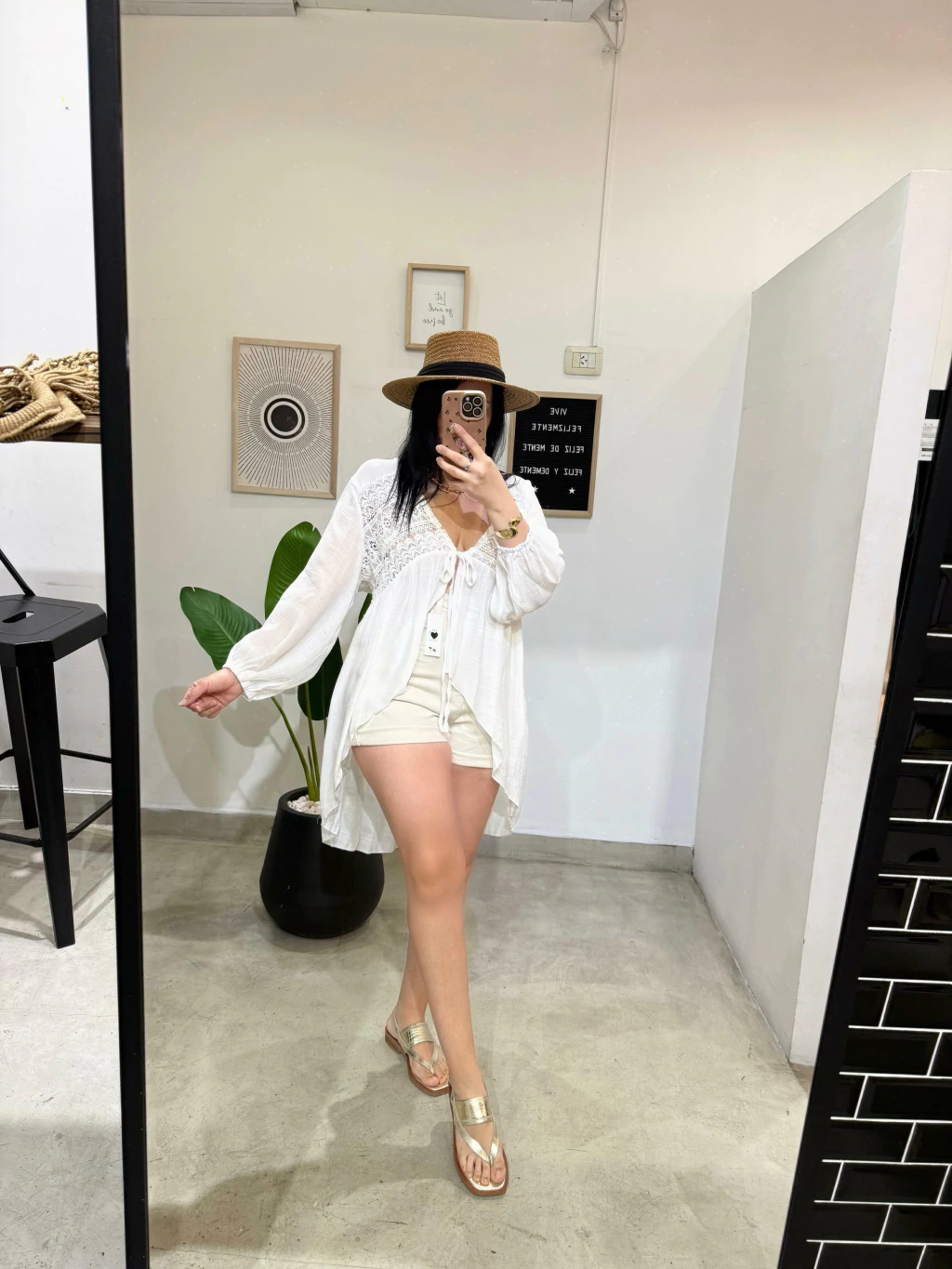 Blusa tipo vestido playero de corte irregular confeccionada en bambula.