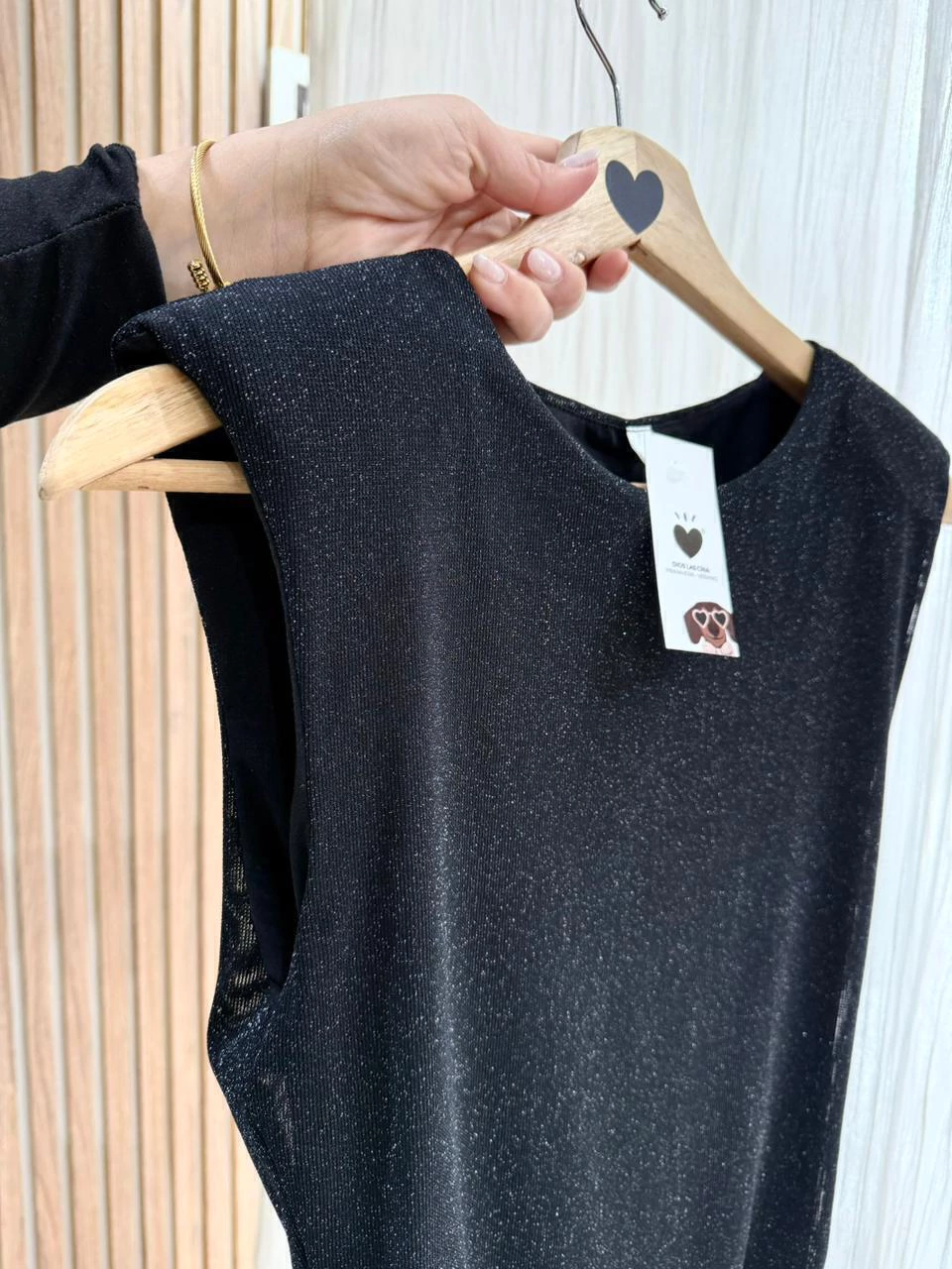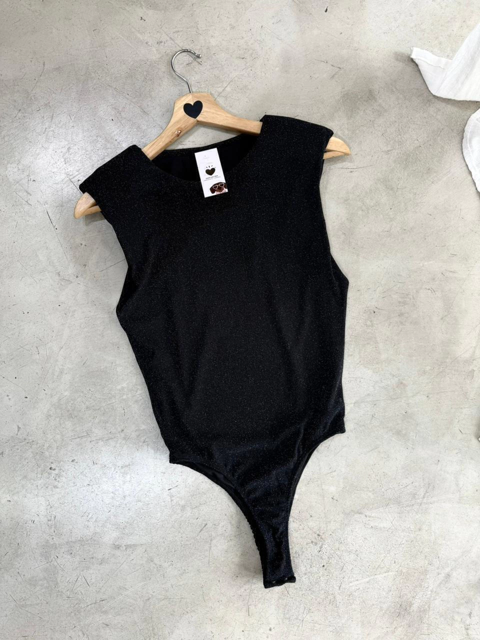 Body con glitter confeccionado en microtul con hombreras. Forrado.