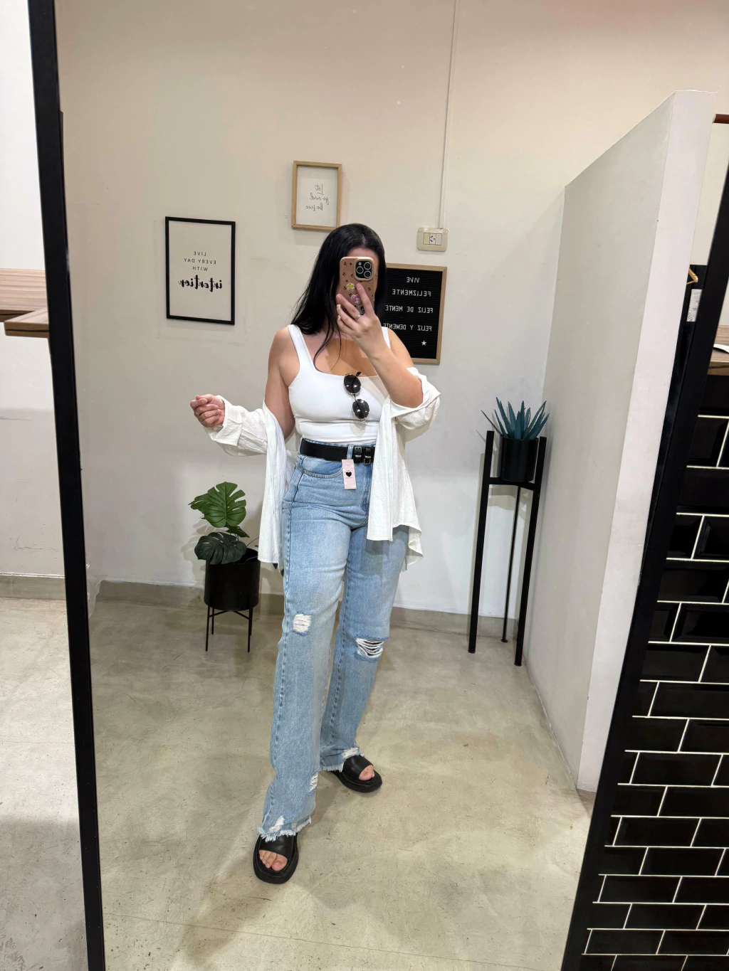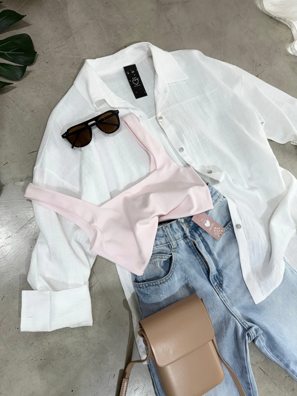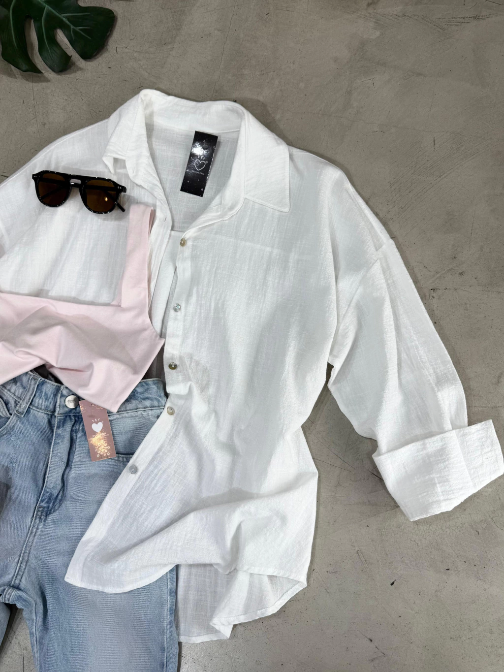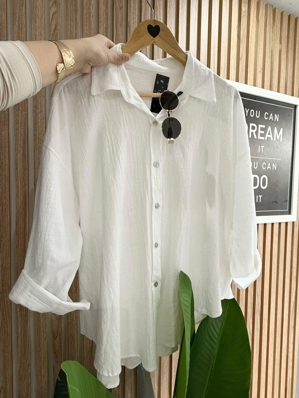 Camisa larga irregular oversize, confeccionada en gasa de algodon
