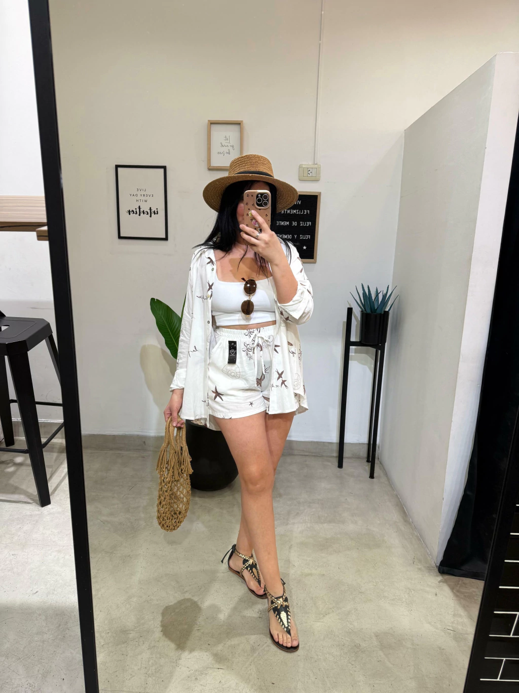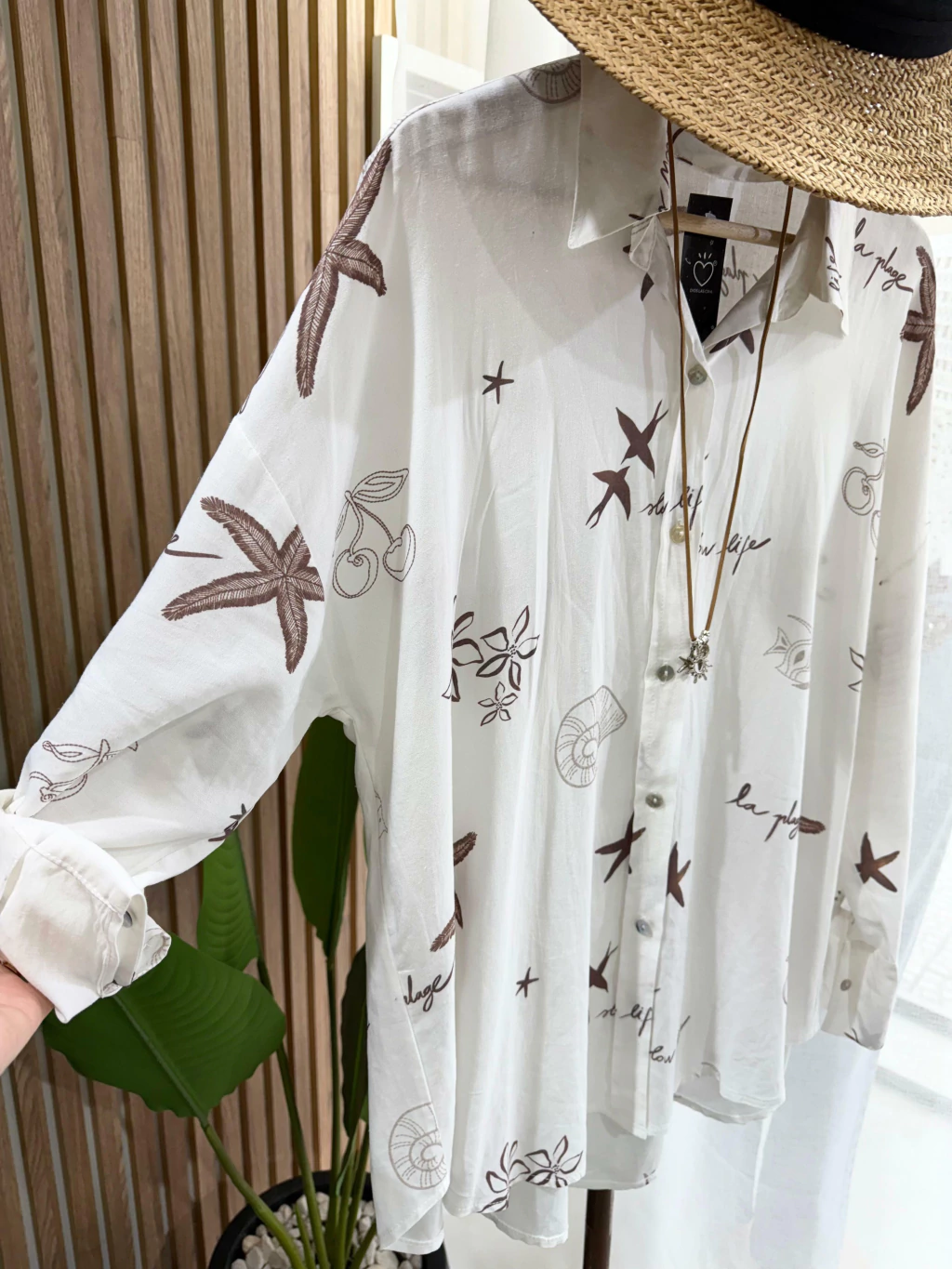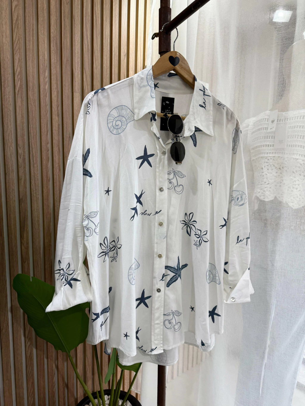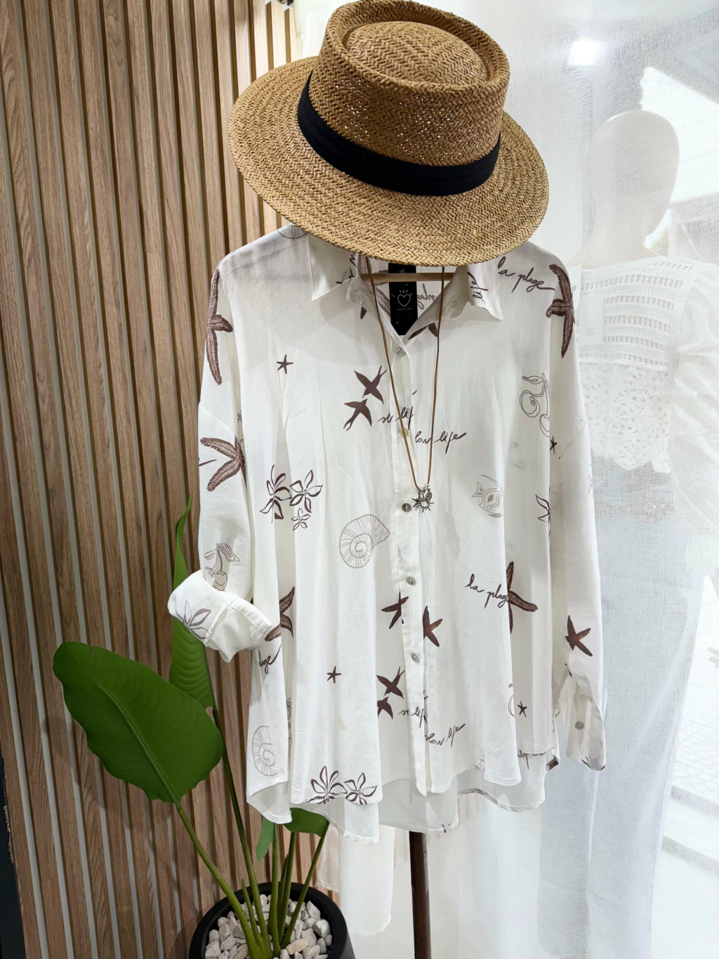 Camisa confeccionada en fibrana, tela fresca y liviana. Corte oversize.