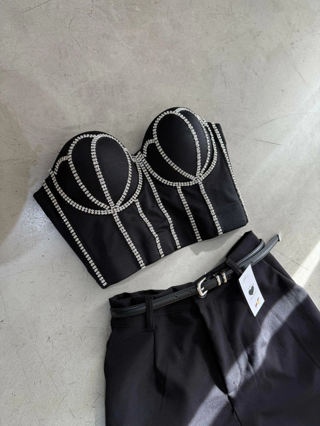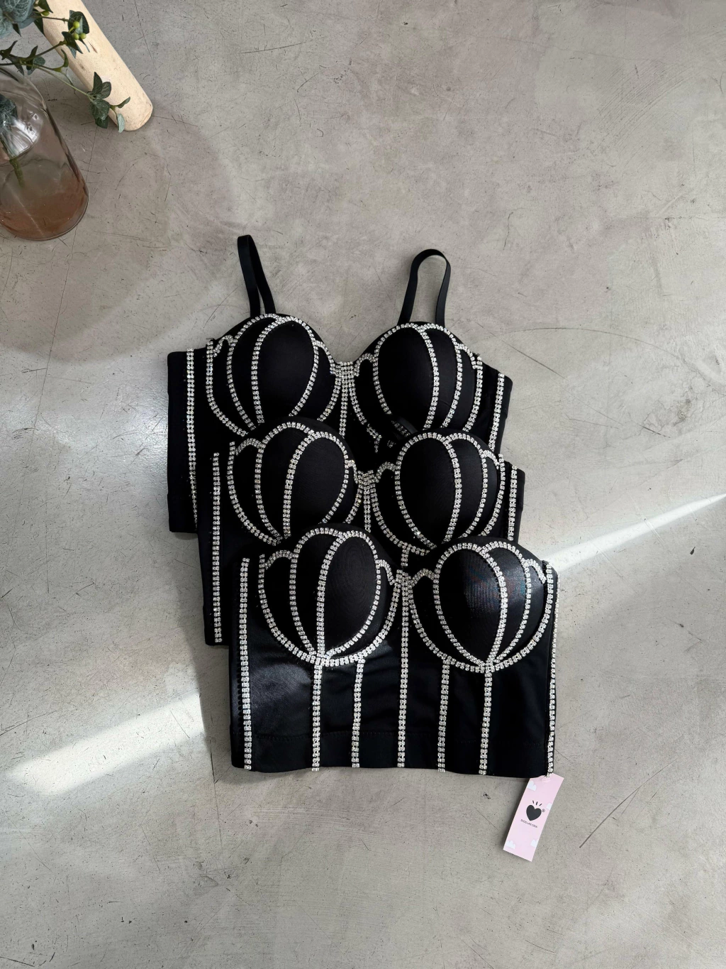Corset con piedras de strass cocidas. Breteles regulables y desmontables.