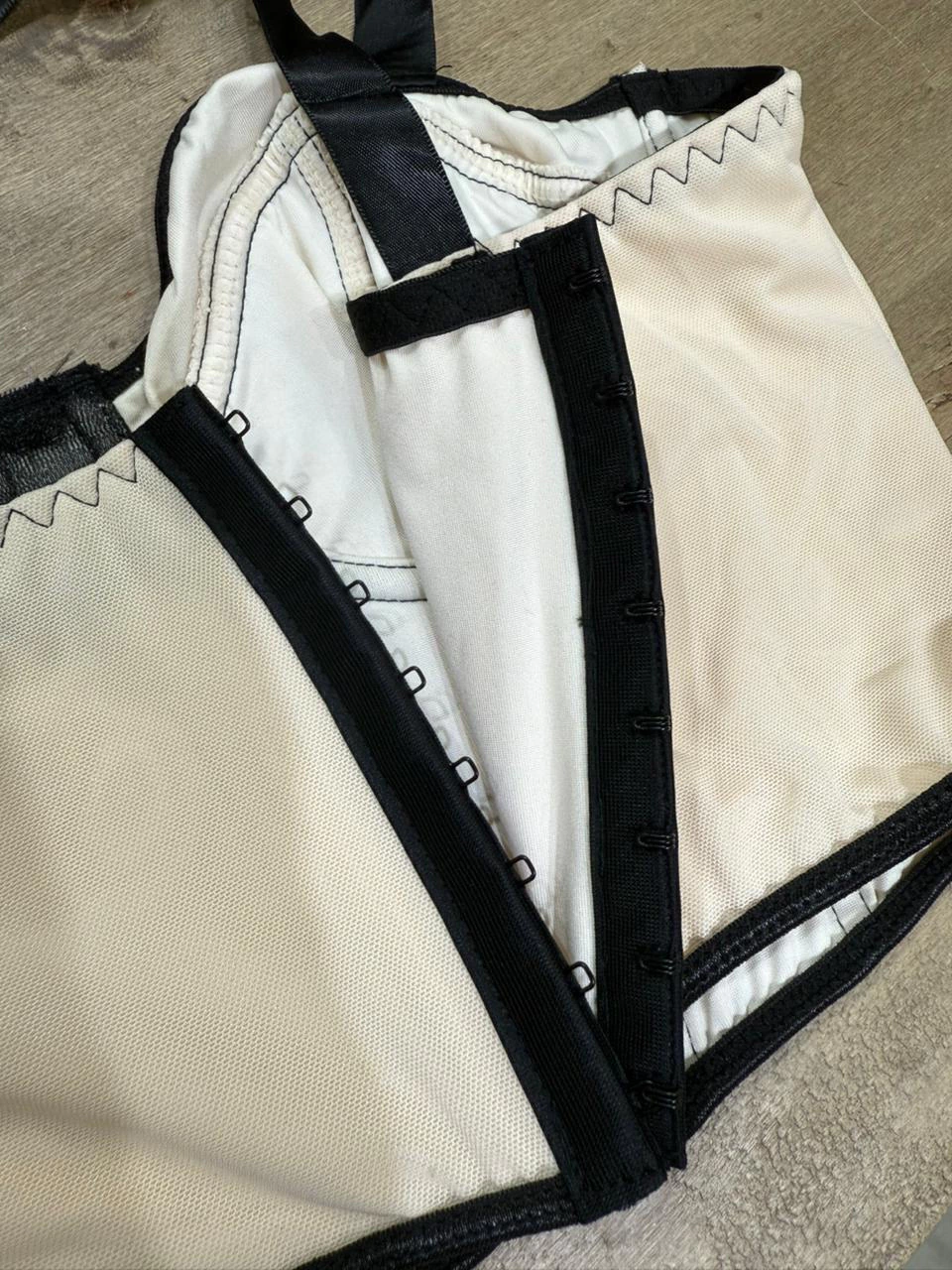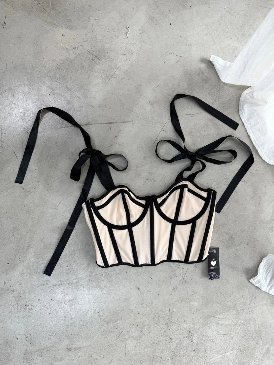 Top confeccionado en microtul forrado con ballenas. Tira de raso para regular