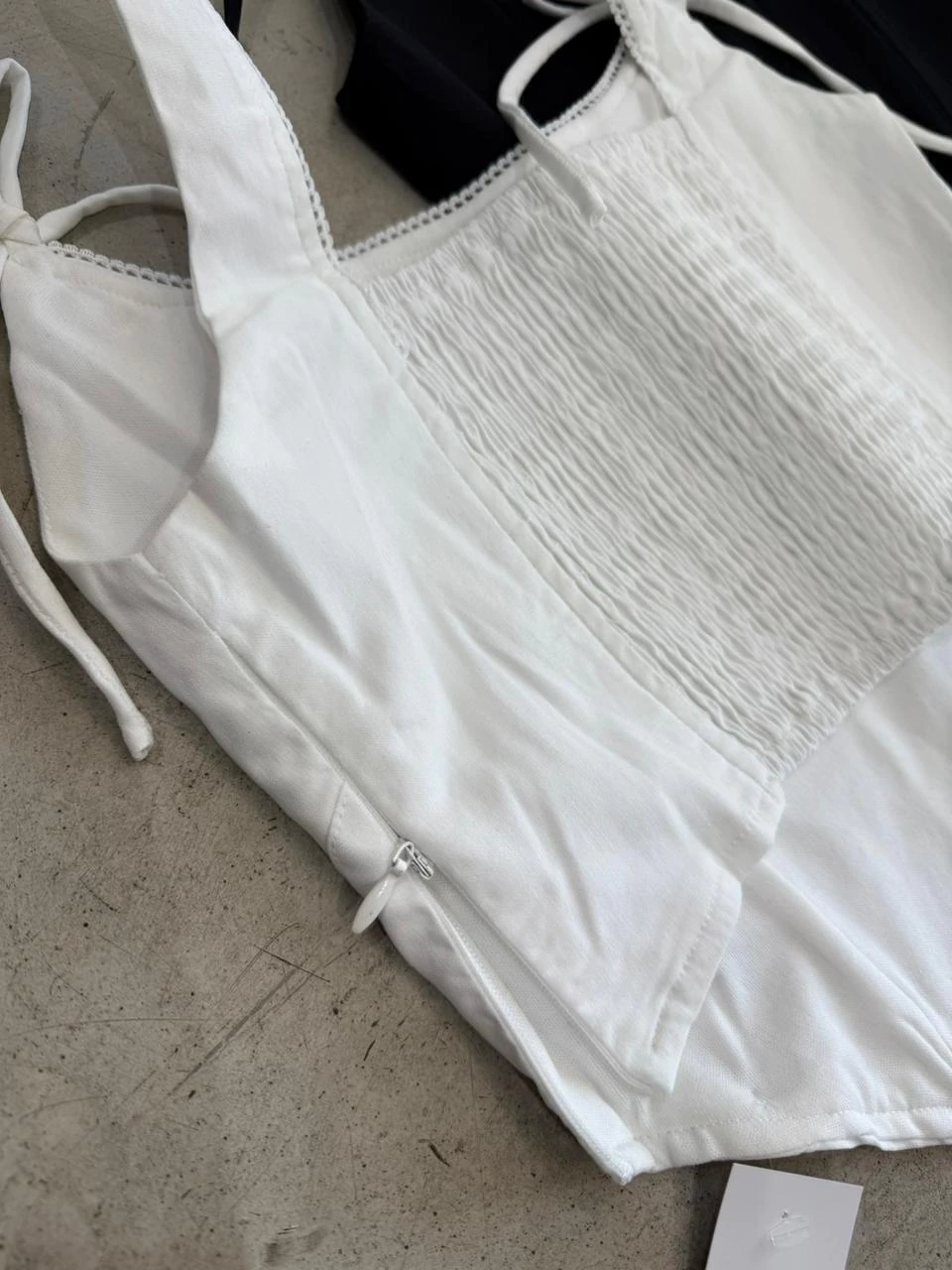 Corset con ballena, para regular/atar el bretel. Multi elástico en espalda y cierre invisible