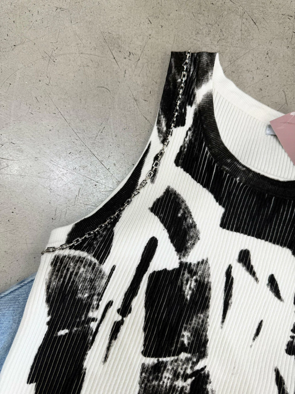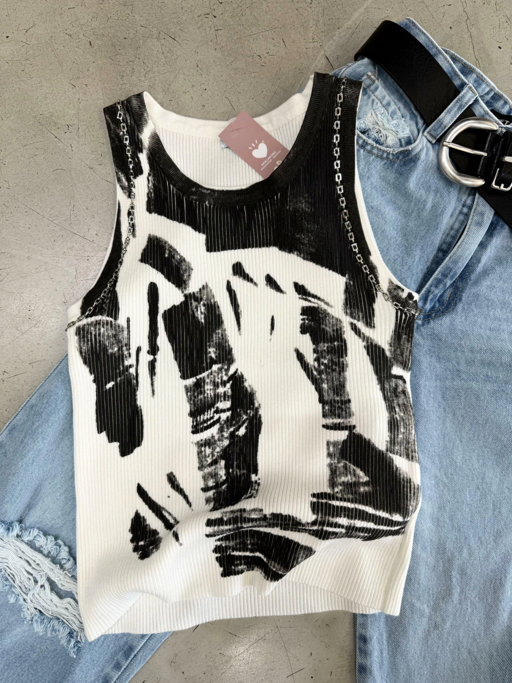 Musculosa de hilo con lycra elastizada. Detalle de cadena en manga.
