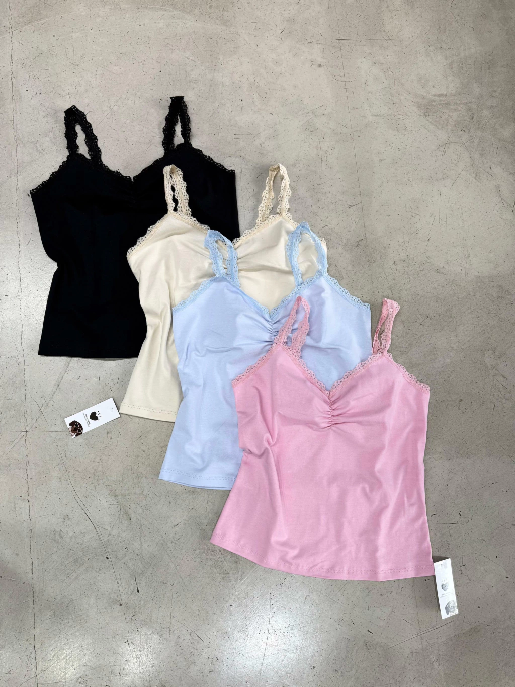Musculosa confeccionada en algodon con frunce y tiras de puntilla