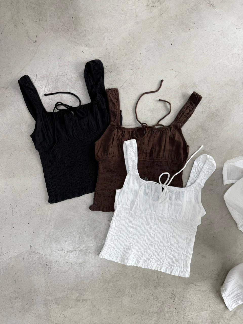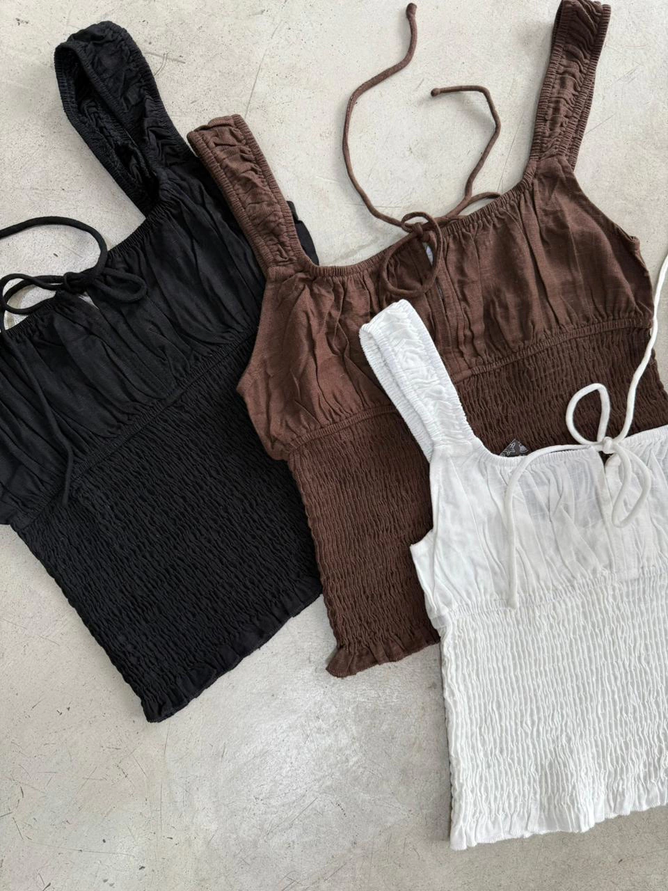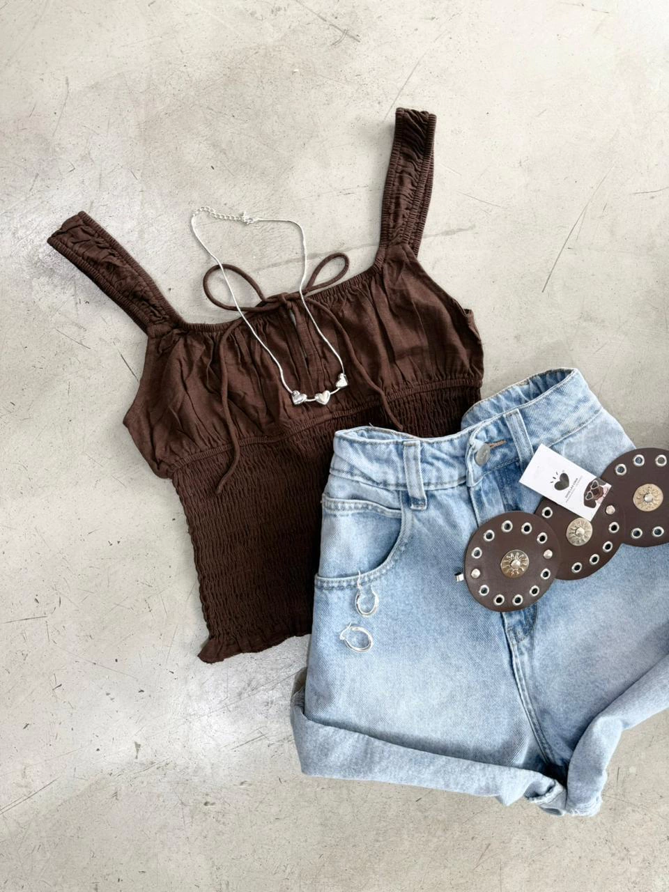 Musculosa de lino , para atar en el busto, breteles con bordes de elástico.