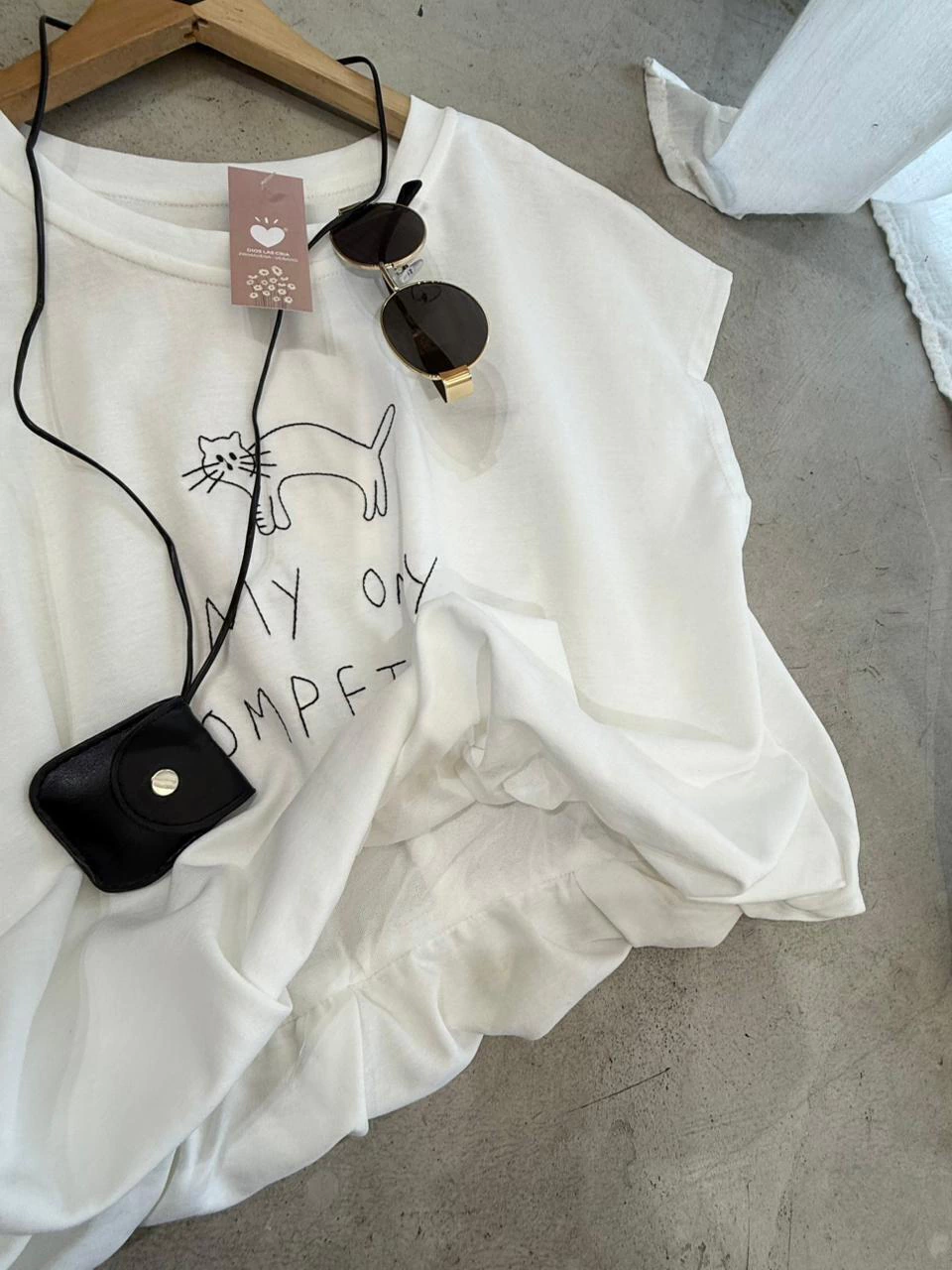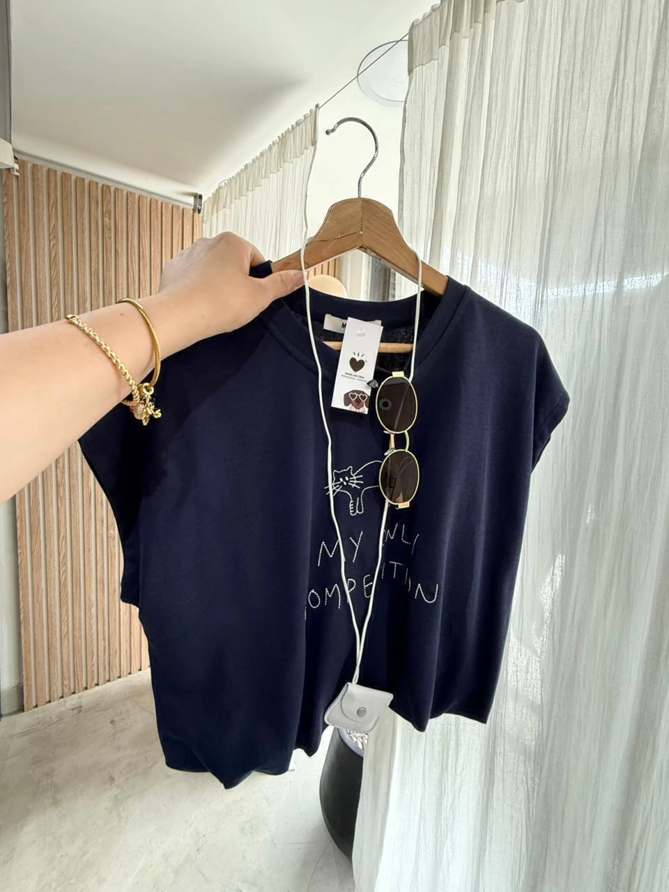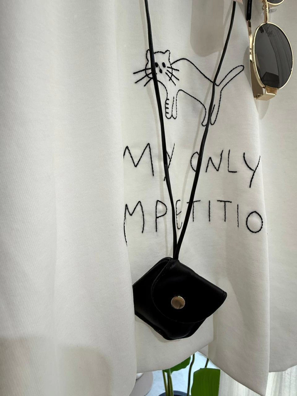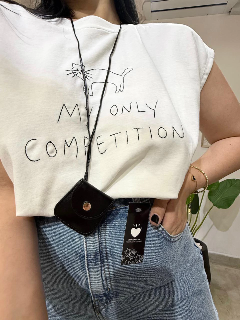 Remera sin mangas, estilo globo. Bordada y forrada por dentro, incluye accesorio tipo collar/ bolsito