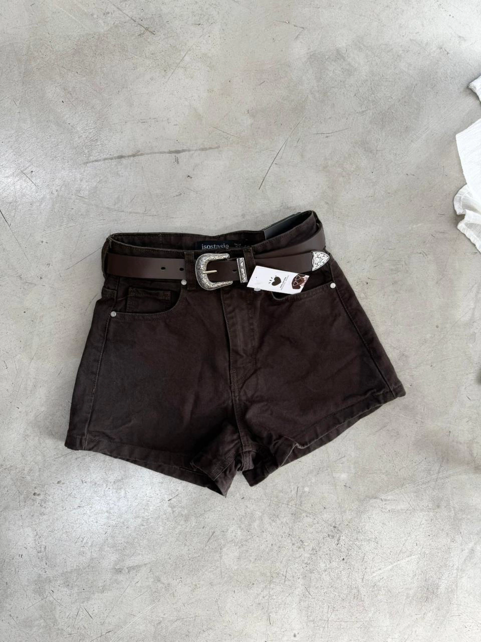Short tiro alto, confeccionado en denim rigido.