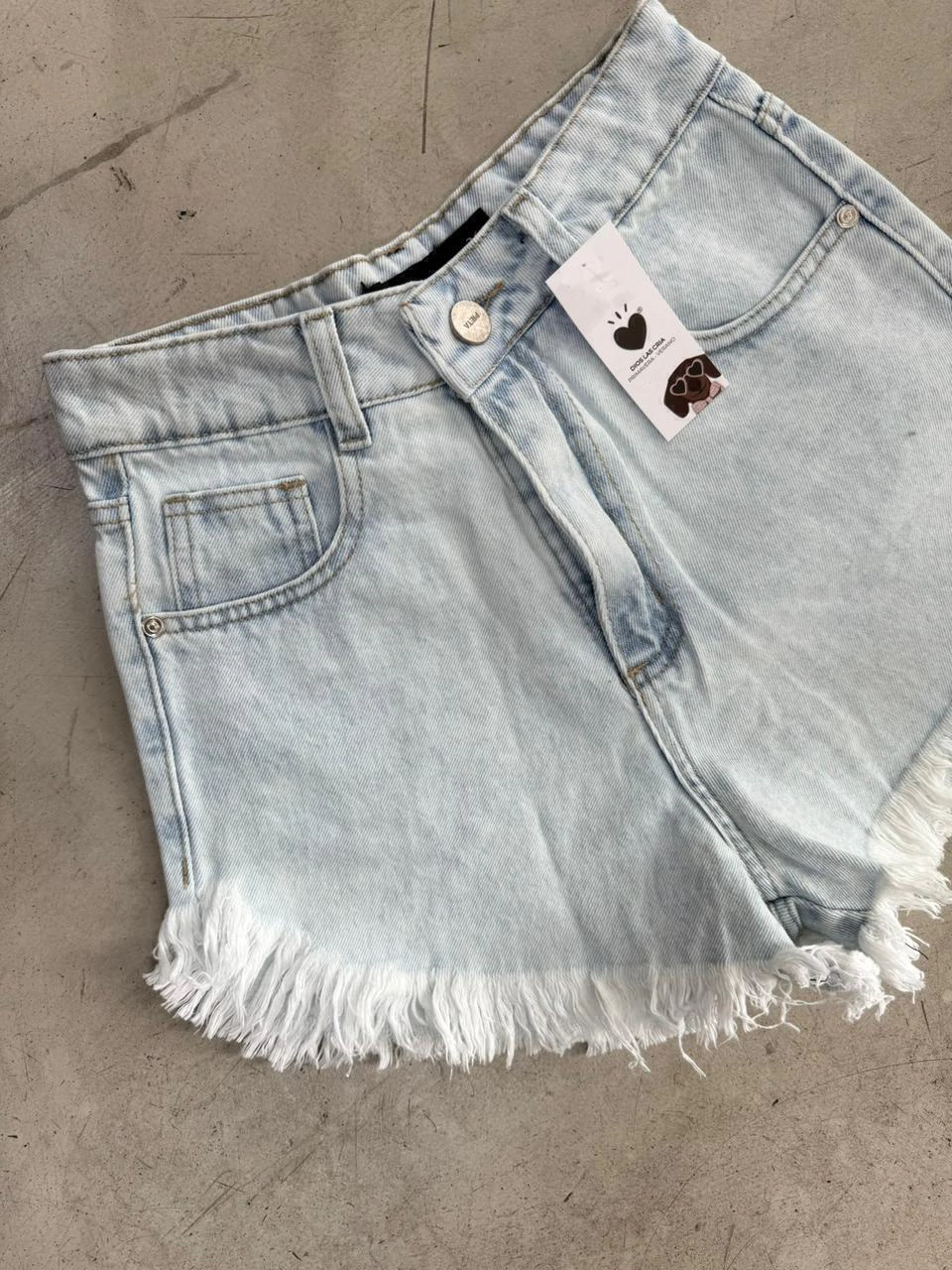 Short tiro alto, rigido. Lavado color celeste.