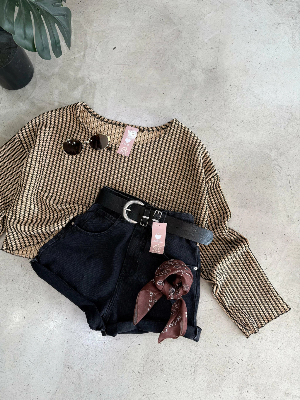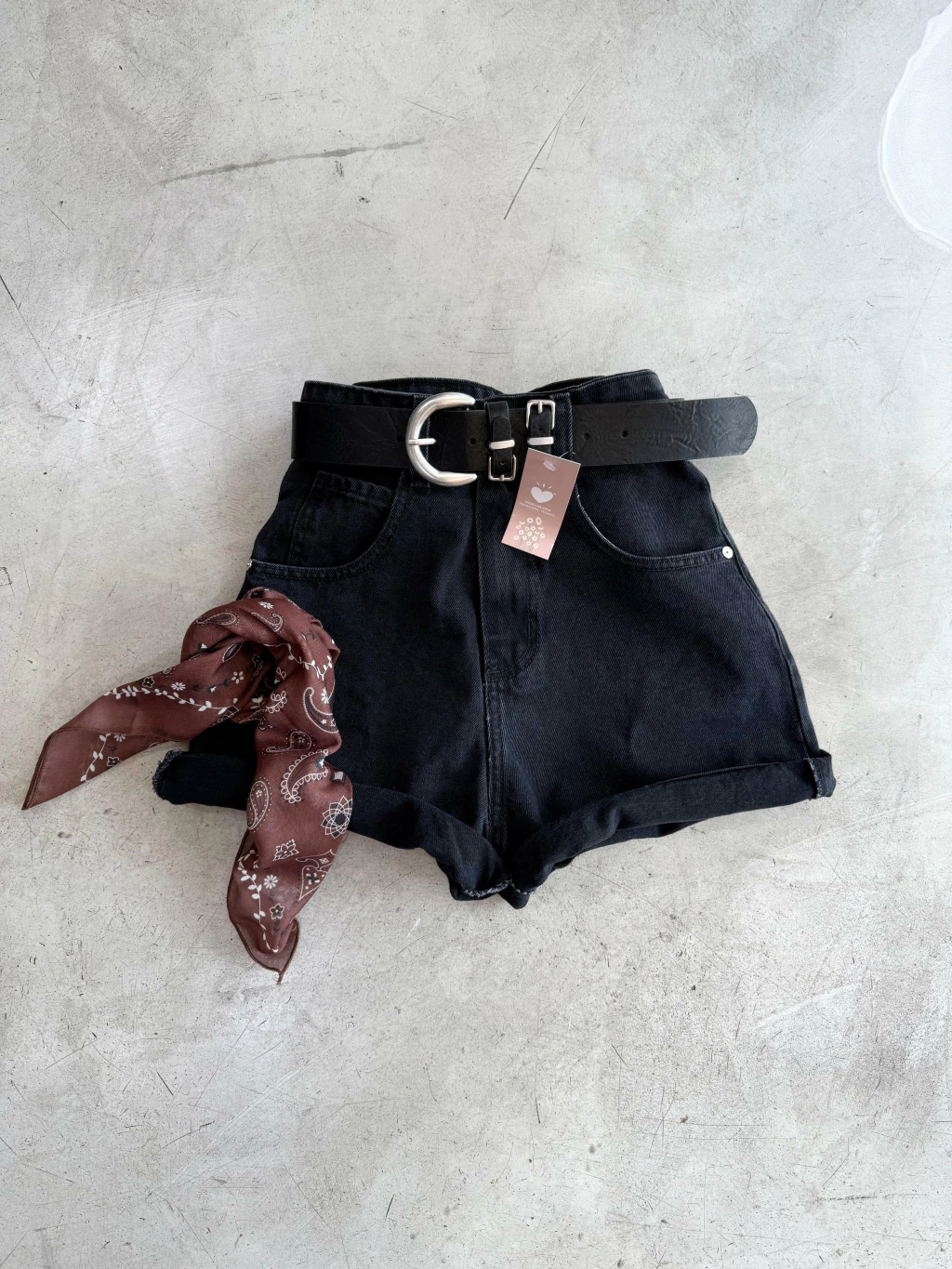 Short mom tiro alto. Confeccionado en bull denim rigido.