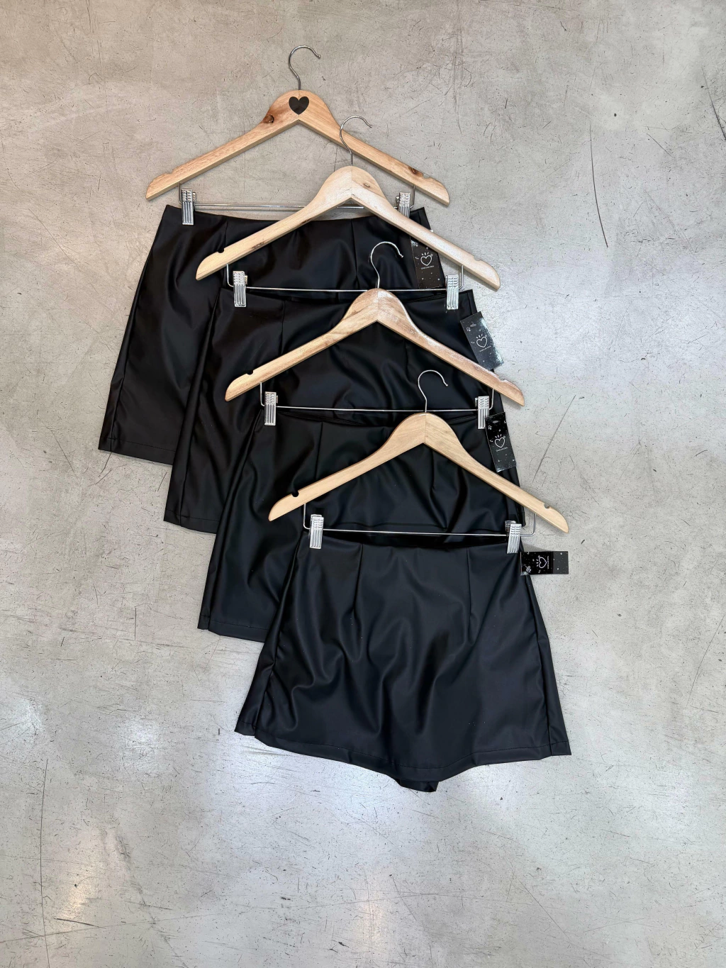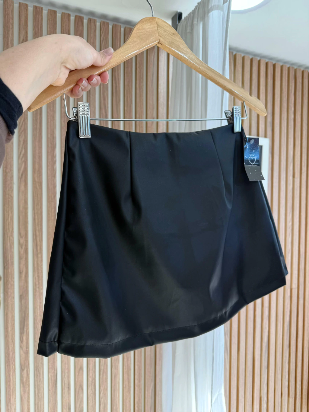 Short pollera engomada confeccionada en PU ( eco cuero ) elastizada.