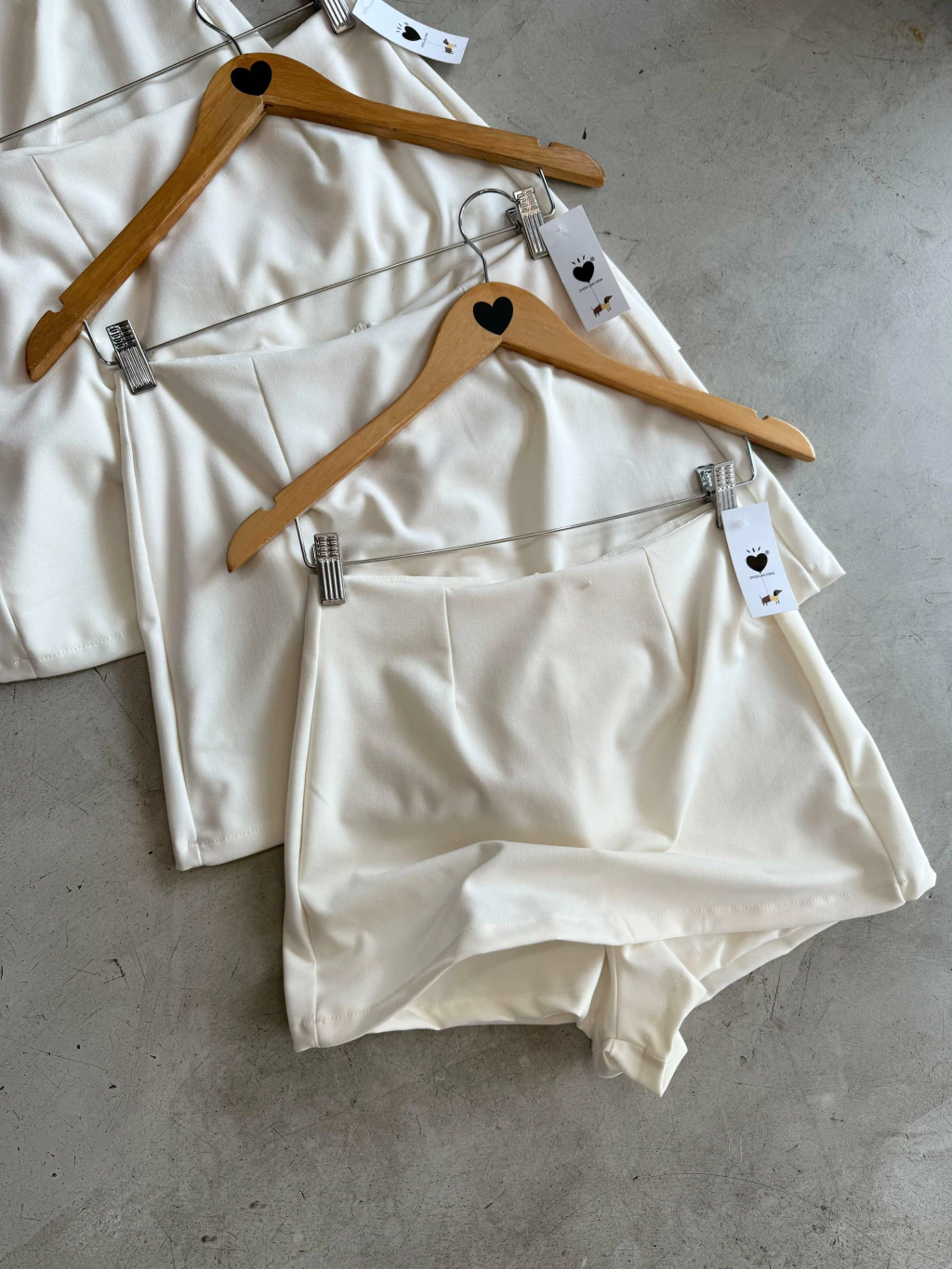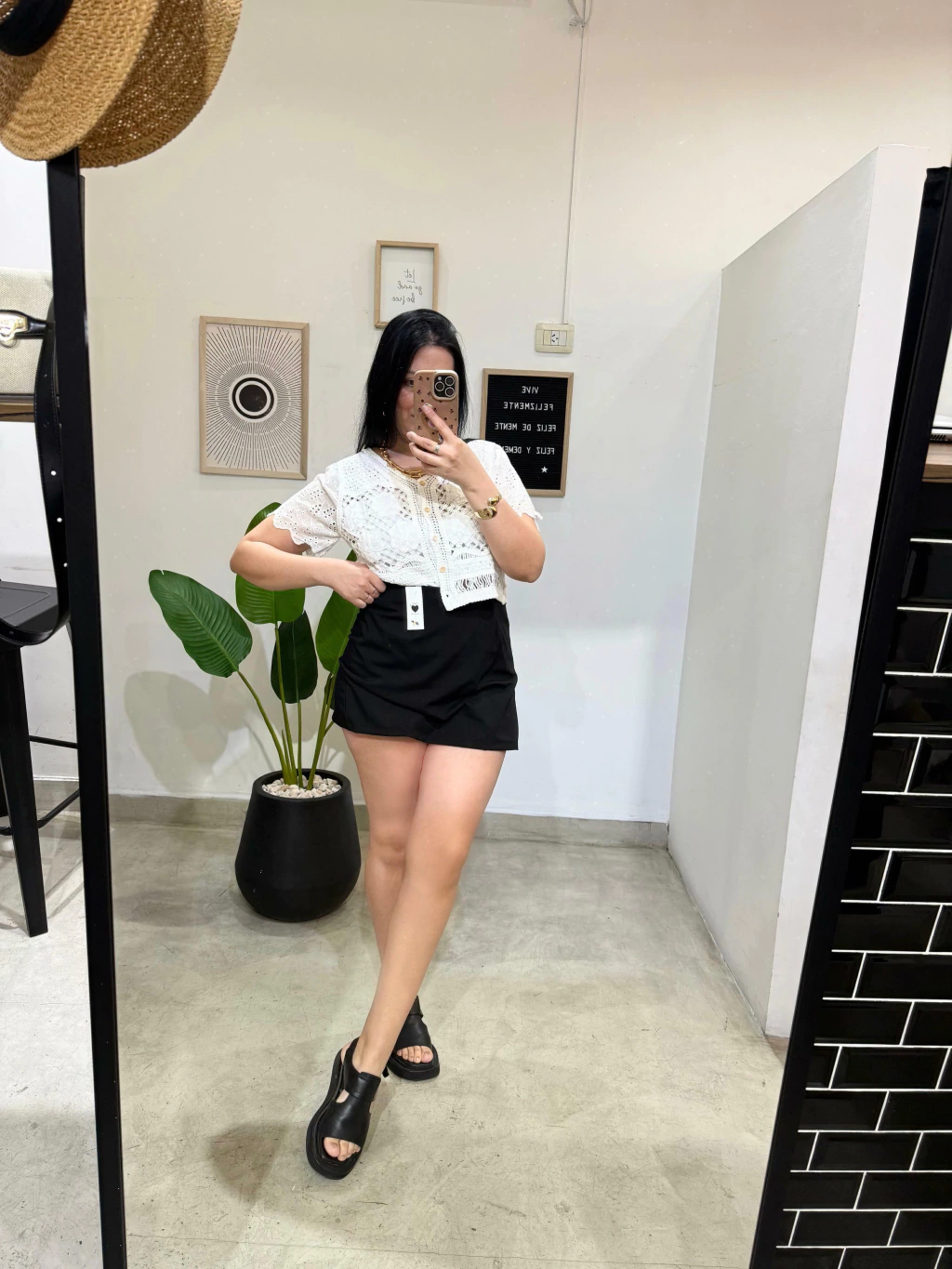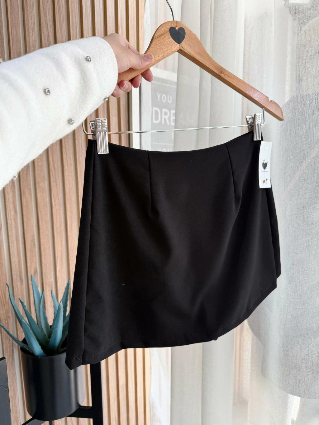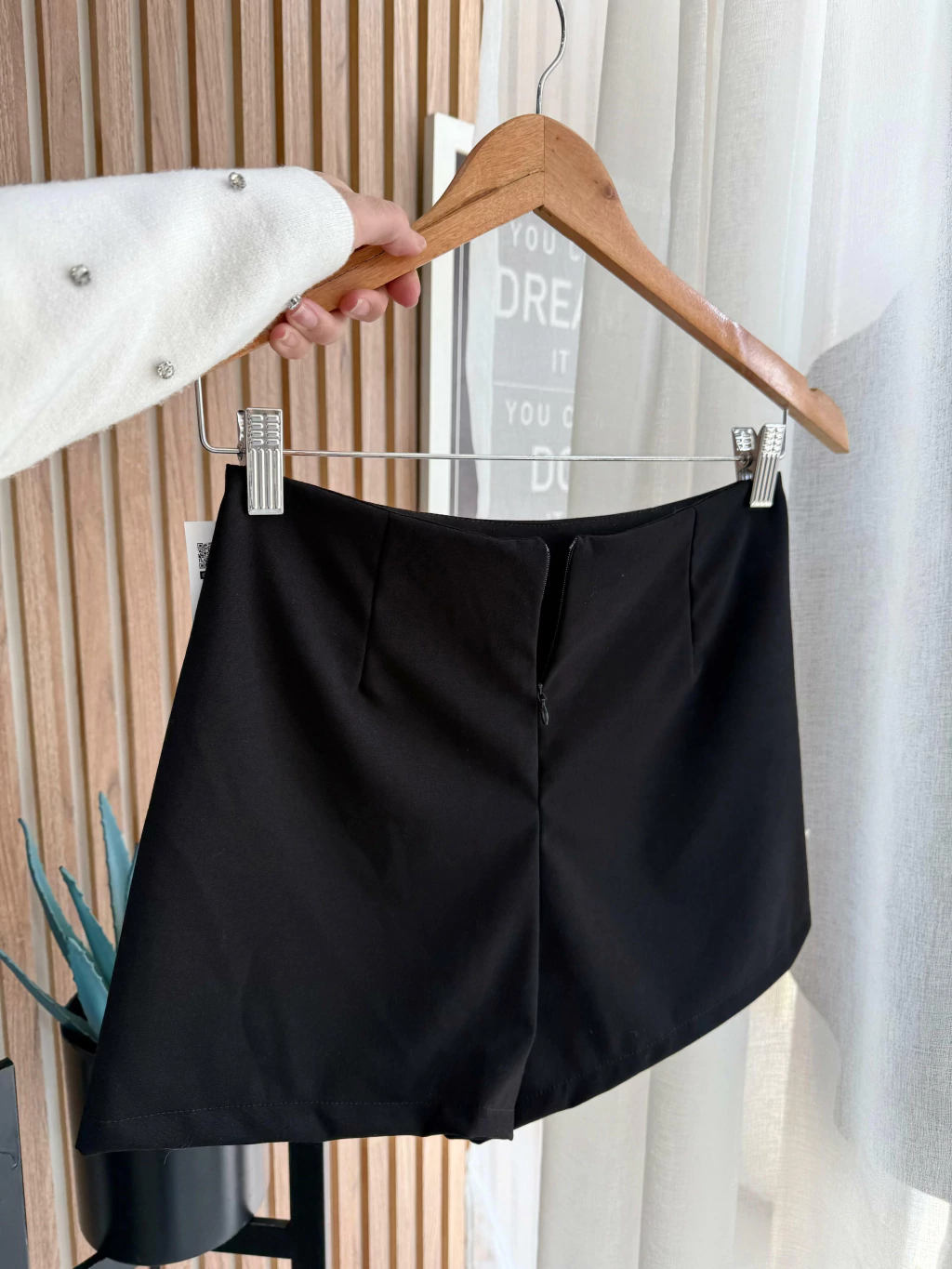 Short pollera confeccionado en tela de sastre. Cierre invisible.