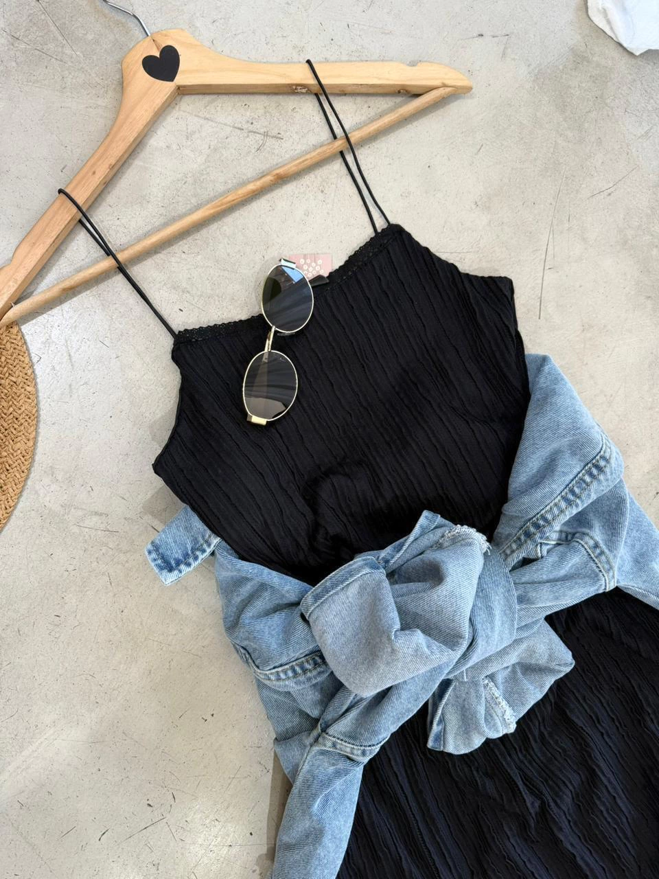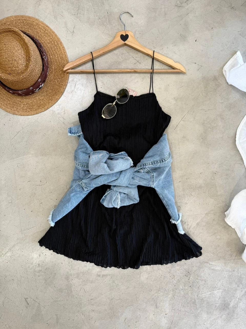Vestido confeccionado en tela acanalada con mucho spandex. Breteles finos y escote recto decorado con detalle de encaje. Entallado en la parte superior con falda levemente evasé. Forrado.